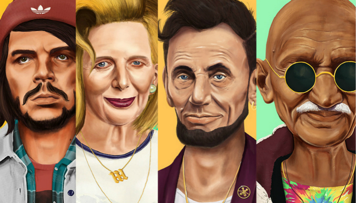 想象一下,当伊丽莎白女王(Queen Elizabeth)戴着科切拉(Coachella)音乐节的标志性花冠,默克尔(Angela Merkel)穿着鼻环、还戴着两个撑在耳垂里的大耳环是什么样子?又或者是穿着时尚迷彩、戴着潮流棒球帽的马丁•路德•金(Martin Luther King)?