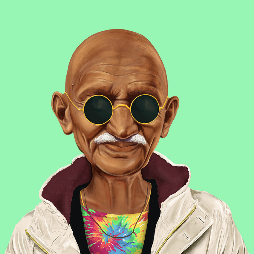 为了挽回这种不平衡,什摩尼毅然承担了一个任务:利用时下最流行的鲜明色调,为自己祖国的国父塑造一系列光辉形象。项目成功后, 这位艺术家又受到启发, 创作了一系列“历史潮人”(HIPSTORY)的画作。在这个系列中,现代历史上的很多领袖人物都变成了当代潮人。