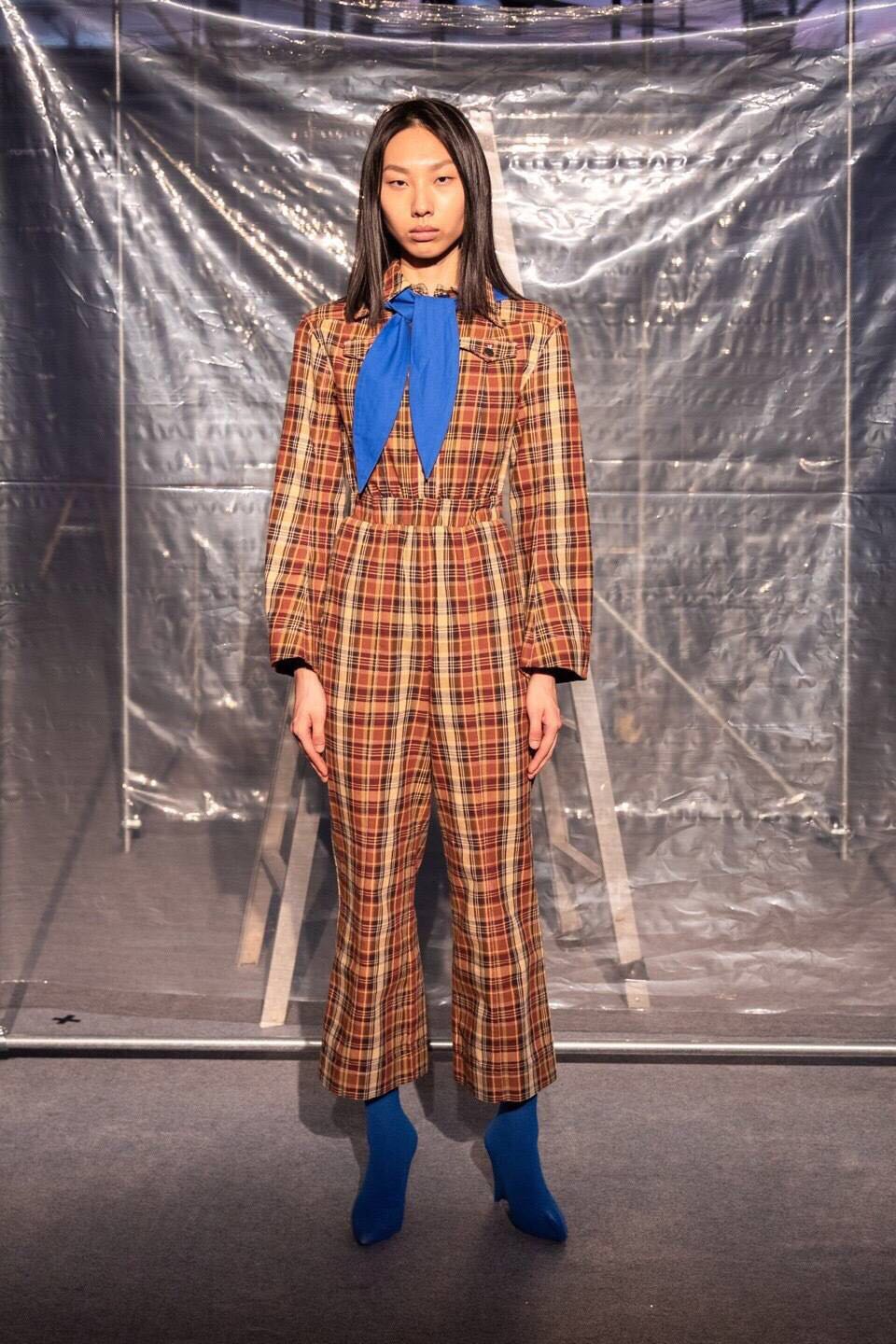 线条明朗的工装和齐整的方格构成了SOCIAL-WORK(社会研究所)2019春夏系列的整体印象,设计师张诚慧和汪琦的灵感来自于东西方文化,他们把1960年代西方青年文化和1960年代东方的工装样式结合了起来,想要体现不同文化的鲜明对比。