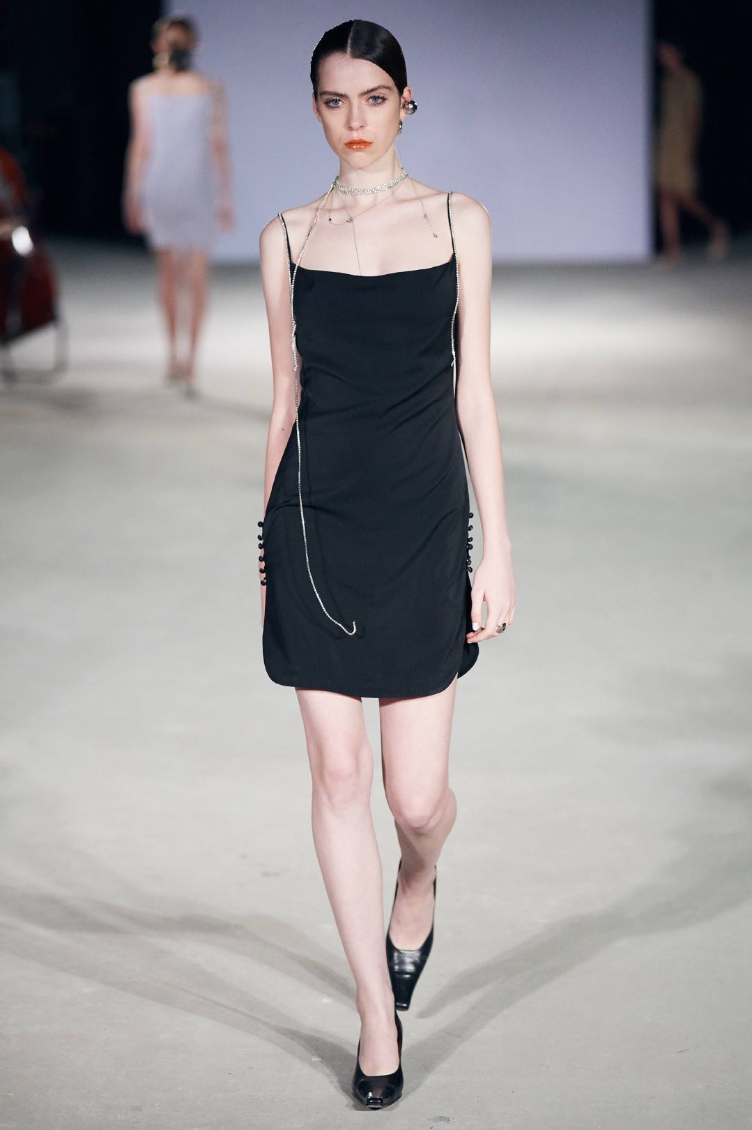 这里的“新思想”指代的是她以前未尝试过的网纱面料、数码印花以及PU材质。而剪裁上也进行了全面升级,有短西装、包身连衣裙、斜肩立领等设计。还有一些款式是与运动品牌MAIA ACTIVE合作,用标志性的镂空和拼接手法,为运动服装注入了时装的现代感。