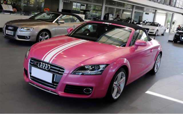 提到粉红色小车,就不得不乱入另一个品牌(小编真的不是托!)。美国玫琳凯化妆品公司把全世界的粉红色系(浅粉色,深粉色等)买断后,几乎可以说从此以后就没有一家汽车厂商生产粉红色汽车了——就连RR(劳斯莱斯)的定做都不能。除了闻名的粉色slk,粉红色轿车一直是致力于“给女性公平、公正,爱,美丽,自信,经济独立,家庭幸福,尊重认可”的知名公司——玫琳凯MK流动的奖牌,这款玫琳凯粉是MK标志性、世界上独一无二的颜色,目前全世界有75000多辆,这在MK是至高无上的荣誉,是金钱买不到的。美国的《Reader Digest》杂志上曾经这样评价玫琳凯粉:在美国,当粉红色轿车停在路边,女主人回来时总会发现满车贴满小卡片,上面都是祝福感和感谢的话,因为在美国人们都知道开这辆粉红色轿车的女人都是非常了不起的女性。作为传说中的全球买断色,且不说其“有价无市”的火爆程度,就从工艺来看,其车漆清薄的程度以及车粉颜色的配比,使得有许多爱好者专门去定制这种车粉色,但是就是喷不出那个颜色~(哦吼吼~)