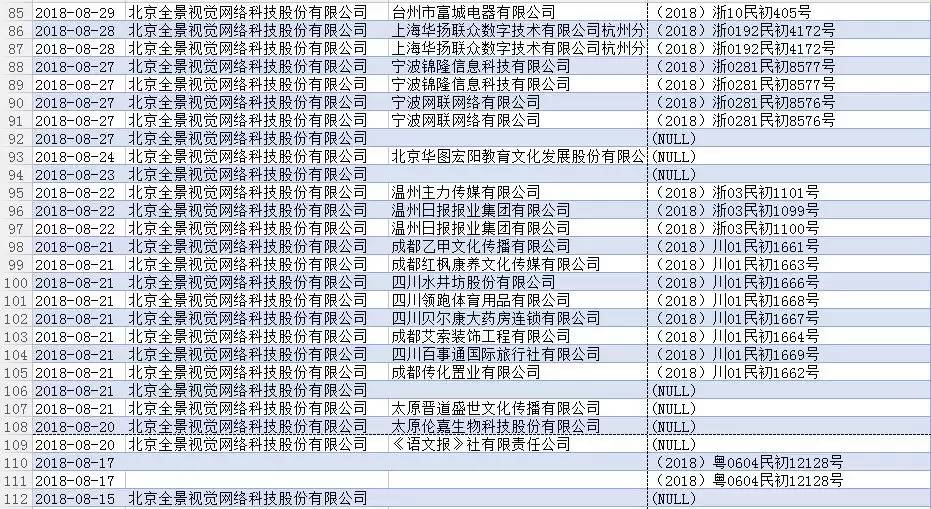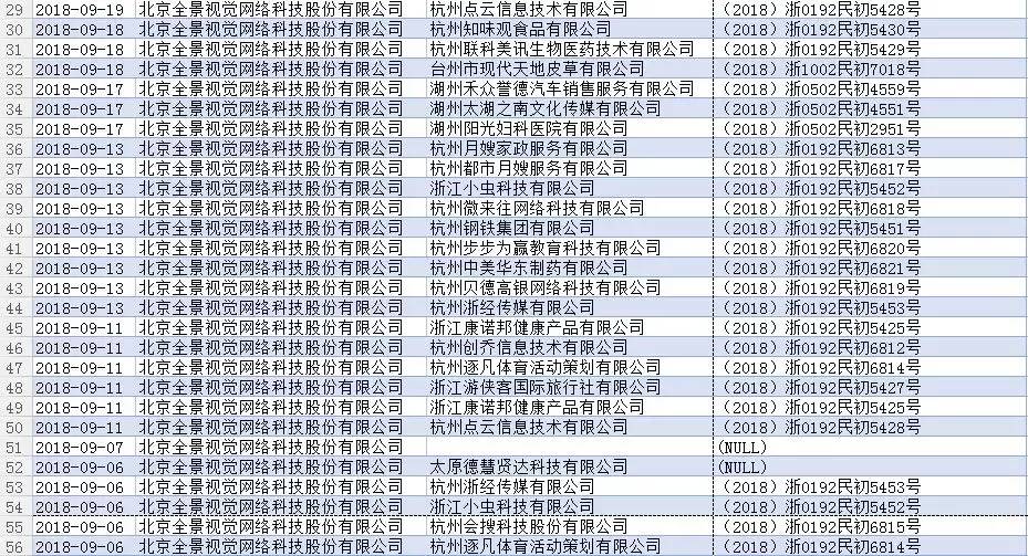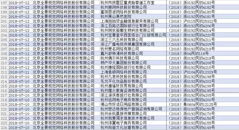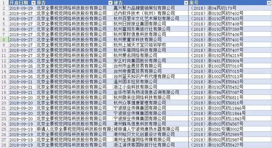 根据天眼查整理的信息显示,2018年全景网络已经有684次开庭通知,光9月份就有76条,这么看来,除去节假日、双休,全景网是平均每天要打3.5个官司,作为原告出席不过来这个说法,看来也是有数据支撑的。心疼全景网络的法务童鞋们一秒。