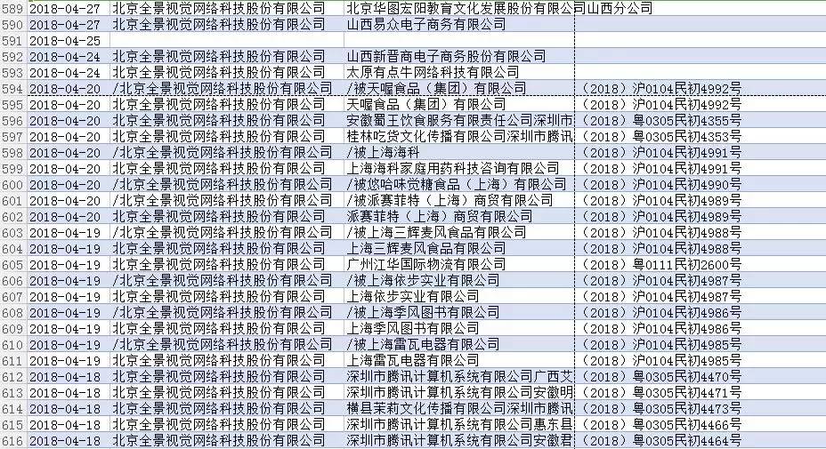 根据工商信息查询工具天眼查整理的资料,仅仅是2018年前9个月,全景网作为原告起诉了684次。