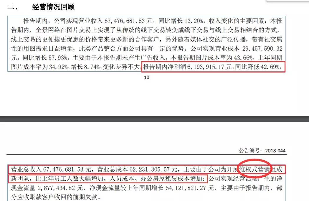 2018年半年报显示,全景网络的净利润还在下滑,不怕,继续增加维权营销人员。只是,这一次公司没有说明又增加了多少名维权营销人员。