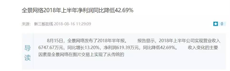 根据2018年的公司半年报,全景网络2018年上半年净利润同比降低了42.69%。而全景网络的做市商中原证券也与之终止了合作。