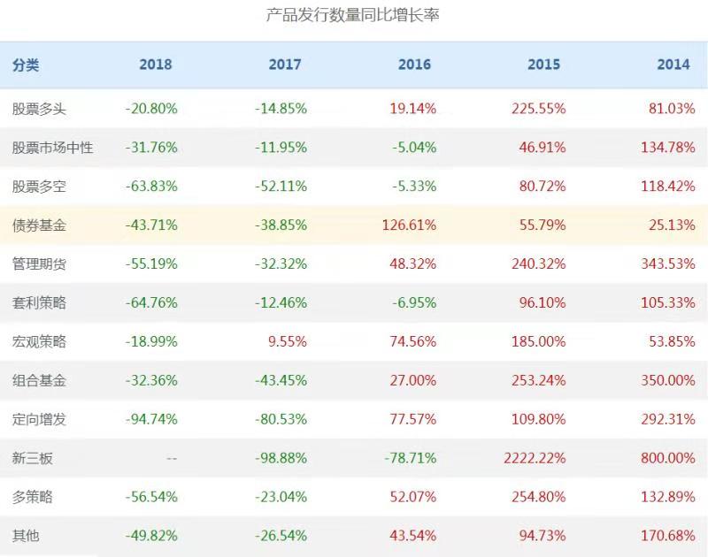 另外,今年以来,套利、股票多空、多策略以及管理期货等策略的私募产品发行数量也遭遇了同比大幅下滑,增长率分别为-64.76%、-63.83%、-56.54%和-55.19%。