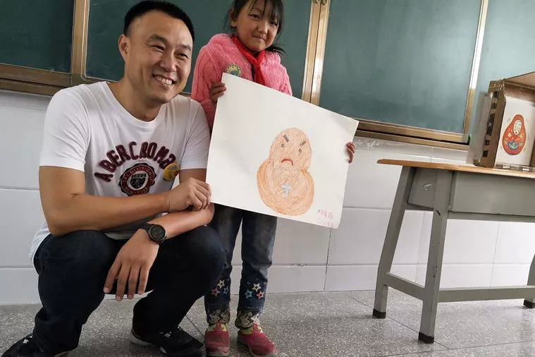 刘新宇:其实不是。每次到学校里去见这些孩子,我一定要把自己变成一个“杂耍艺人”。我从日本一位老画家那里学了一种东西,叫“纸芝居”。它实际上就有点像过去北京街头拉洋片的,看上去好像是把绘本拆开,在一个木头或者临时拿纸壳做的小舞台上,一页一页演给孩子们,边演边讲,还能互动,通过这样的方式跟孩子们来沟通。为什么这么做呢?因为用这办法,我能在非常短的时间内让孩子们笑起来。这也是对我最大的激励、最大的回报。我觉得这是一个特别重要的事。因为我知道那些孩子平时在家里、在学校里,通过成人得到的这样一些温暖、一些关注,实在太少了。为什么我说要做杂耍艺人?杂耍艺人实际上是在讨好自己的观众。说“奉献”有点大,就是我的一些付出可以让孩子们能够发现自己其实不是没人关心。因为留守儿童最大的问题,就是父母在该陪在身边成长的时候恰恰不在。这种缺位导致了一个心理学上的概念叫做“核心自我评价能力”比较低,也就是自尊和自信不足。为什么呢?是因为自尊自信的基石应该是父母在人之初的时候通过爱和关怀传达给他们的,自我价值的最初奠基就是通过体会父母对自己的关心和爱来建成的,通过跟父母的互动一点一点反复确认“我是值得被别人爱的”“我在别人的眼中是有价值的”。这种确认首先来自于自己的爸妈,不会来自于旁人。那现在因为来自于爸妈的关怀和肯定没有,或者很少,它的基石就是很松散的。如果这个根基不深的话,就建立不起人格的大厦。他怎么可能形成一个坚强的人格,怎么可能形成一个自立的人格?他永远会怀疑自己活的是不是有价值,会怀疑自己是不是配被别人关注和爱。所以你就会看到后面很多程度不同的反应,比如说自卑自轻,那自卑的另一面是什么?就是我对自己都不重视,我对自己的生命都不重视,我怎么可能重视你呢?我对你的生命怎么可能会尊重呢?所以它实际上有这么一个内在的逻辑。所以我去到学校,到孩子们身边,我就兴奋,就想方设法,给他们讲故事,表演纸芝居,总之让他们能觉察到别人对他们的重视,觉察到他们在一个成人内心中是有重量的。