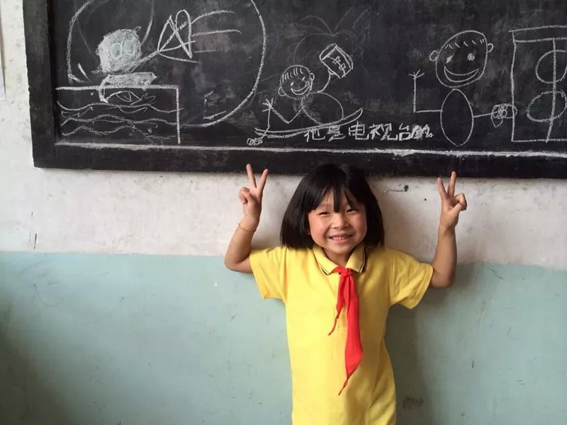 ▲ 山西一所留守儿童学校,孩子们在黑板上画的刘新宇他们