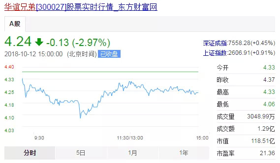 截止到今日,华谊兄弟的收盘价格仅为4.24元,市值跌破118.5亿元。