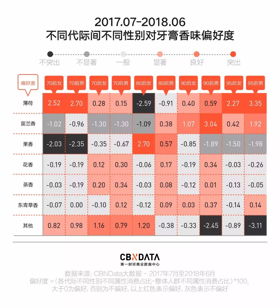 从女明星们带火的一波波“香口丸”,可见大众对口气的在意程度,已然将其列入个人仪表之列。而从线上95后在不同香味牙膏上“金力”分布可见,他们对“薄荷”味牙膏的青睐有增不减。值得一提的是,70后的叔叔阿姨们也是“薄荷”味口气的拥护者哦。