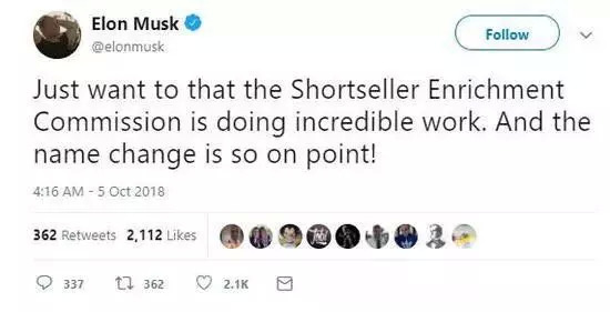 这意味着,SEC正式支持了这份和解协议。此前,由于马斯克与SEC关系紧张,人们担心这份协议无法达成。就在8天前,马斯克还在推特中吐槽,将SEC讽刺为Shortseller Enrichment Commission。