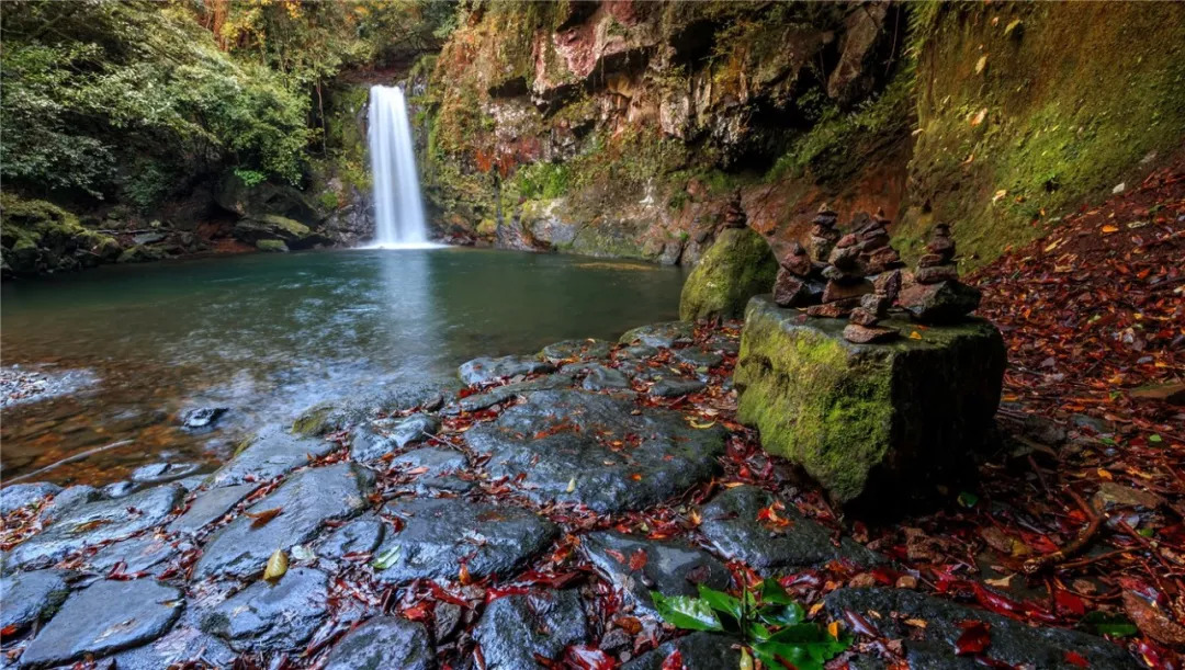 深秋时节,当泛红的枫叶星星点点的散布于溪谷,和轰峡的瀑布相互映衬,别有一番韵味。这可是长崎县内的私房赏枫地。