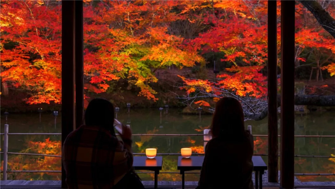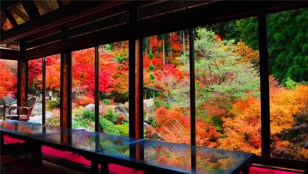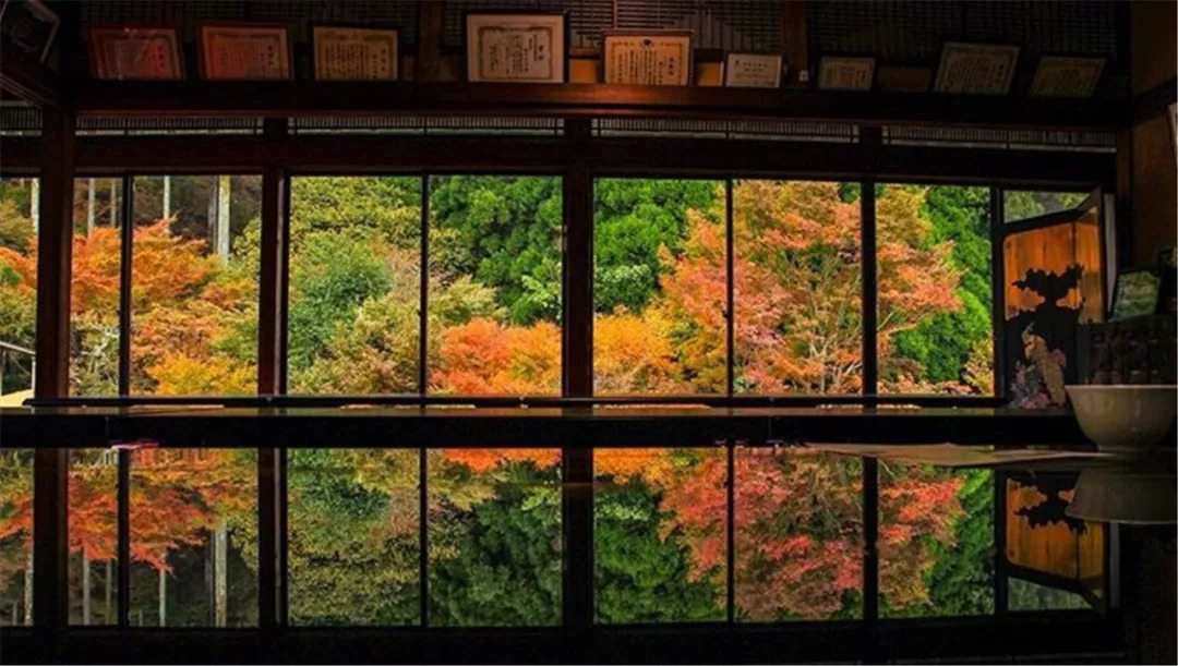 值得一提的是,林內有一座以唐津百年古宅改建而成的“风游山庄”,你能在这儿一边欣赏红枫盛景,一边享用热茶、小食。最特别的是,你能在这儿欣赏到如京都琉璃光院般倒映于桌面上的红叶绝景,这让它获得了“小琉璃光院”的称号!