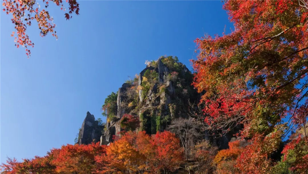 每到红叶观赏时节,你能从因可将八座山峰尽收眼底,而被称为“一目八景”的眺望台上远望被红叶染遍的乌帽岩、仙人岩等知名景点。