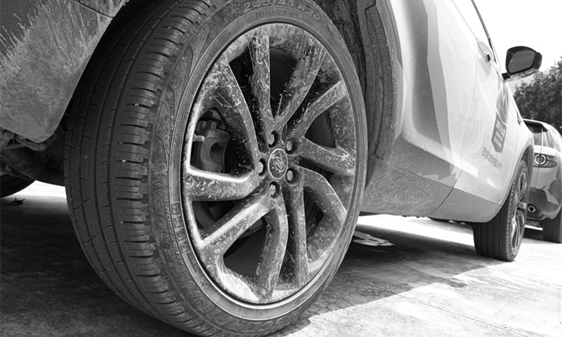 在一段泥土的行驶后,大家集合在途径点休息,这时的车轮和侧裙上都是经历过“越野战场”所留下的泥土,“LANDROVER”的标志所蕴含的越野基因在这一情境中得到最好的体现。