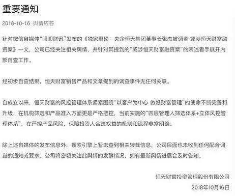 恒天财富并未否认上述爆料内容,只是称在着手展开内部自查工作。