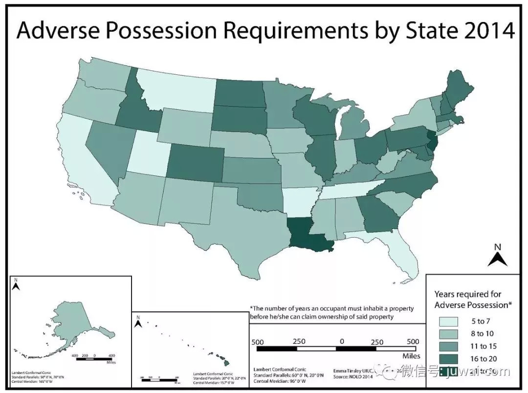 时效占有法(laws of Adverse possession)又称“占屋者权利”。在美国,尽管各州对于时效占有法的要求有所不同,但都需要至少满足一些基本要求:以公开方式占据财产,对财产有实际有效的控制,并像财产原主人一样使用它。