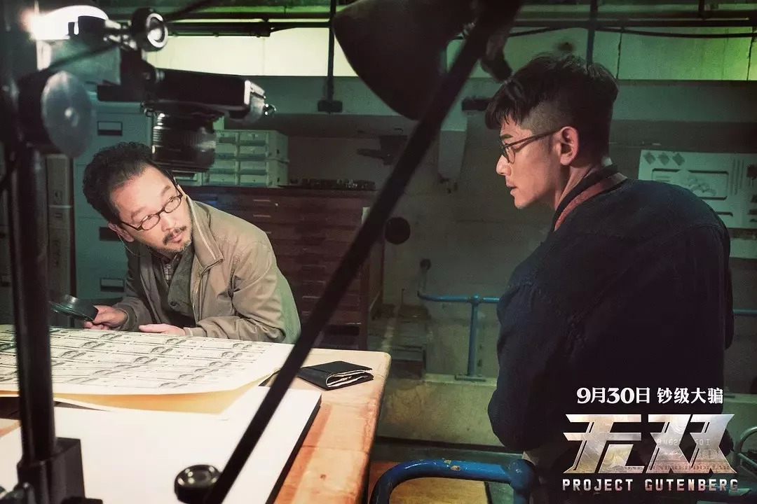 李问的讲述构成电影的主体,除了喋血双雄(熊)的故事,还详细铺陈伪钞制造流程,满足观众的猎奇心理,摩尔纹,浮水印,制版,凹版印刷,无酸纸,变色油漆……据说为了真实还原,剧组还真的将美钞印了出来,在杀青后统一销毁。