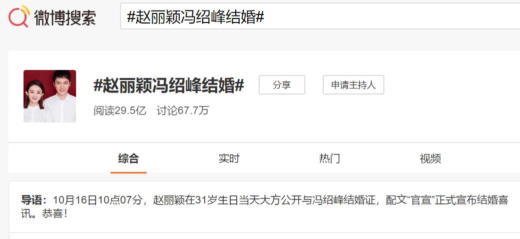 截止到目前来看,赵丽颖一条“官宣”的微博已经有超过139多万条评论及660多万点赞,加上各种转发的曝光量已经近30亿量级。除了双方粉丝和各类吃瓜群众,赵丽颖结婚事件的最大赢家却可能是荣耀手机。