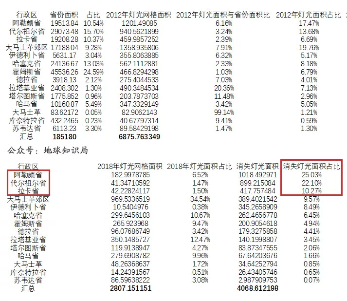 下图为灯光面积变化的详细数据