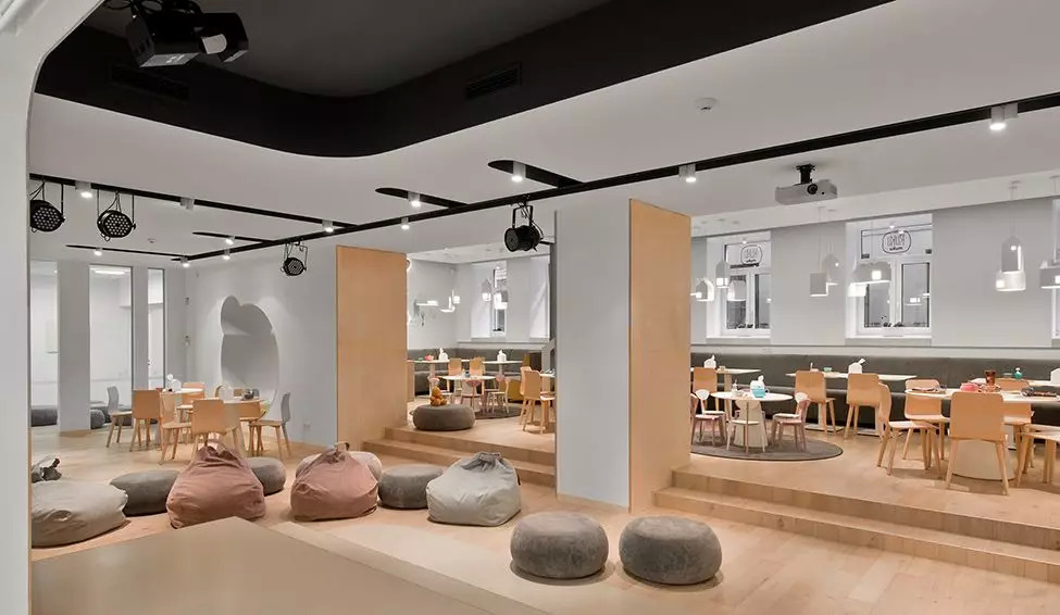 不同年龄阶段,儿童对于家具形式和家具高度的需求不一样。一般儿童餐厅会配两种不同高度的家具来区分年龄阶段的就餐区域。