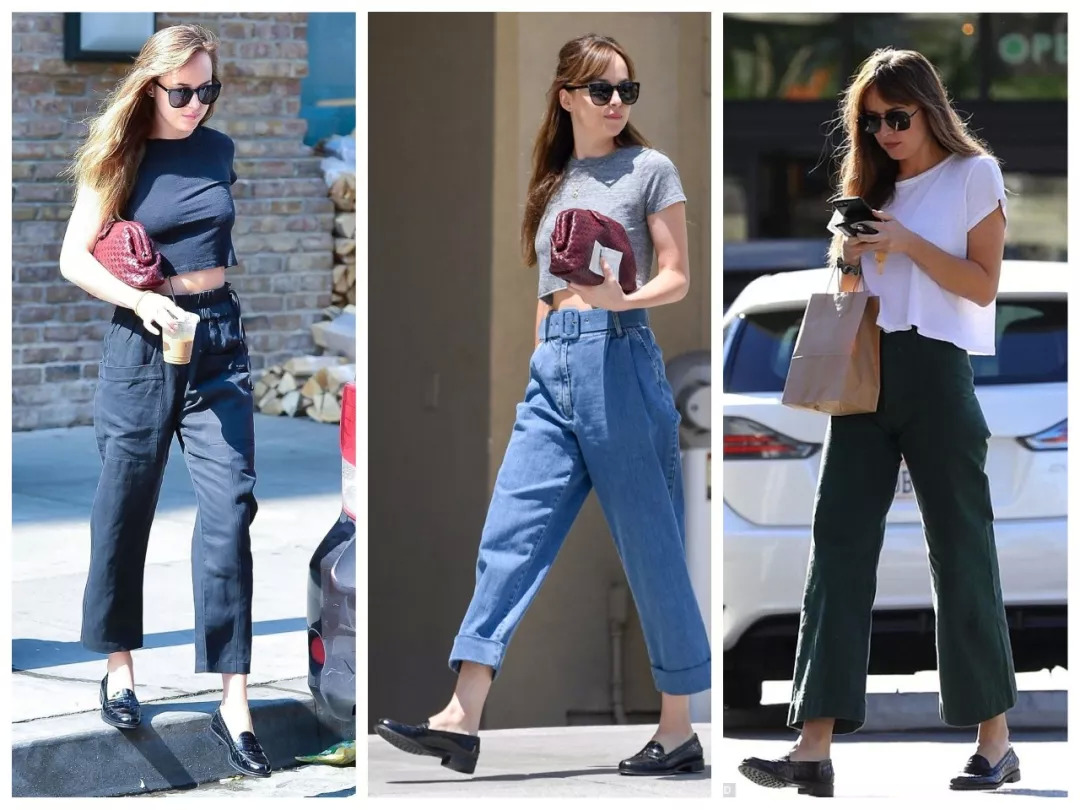 首先,你能到的所有裤装,它都能走一波!牛仔裤、阔腿裤、小白裤...像秀晶那样走easy chic路线的姑娘可以这么穿。
