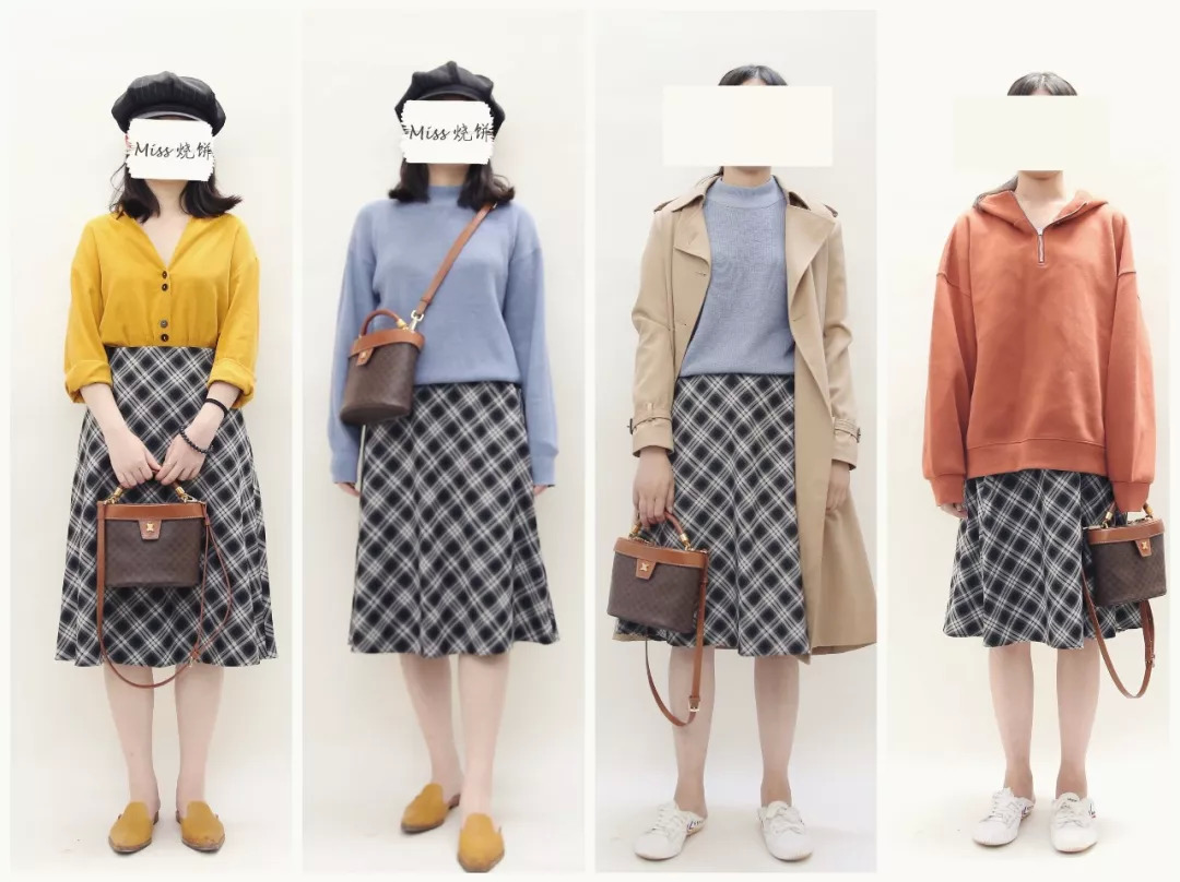 这条格纹裙,我最爱它的一点是:任何衣服都能搭,任何季节都能穿!