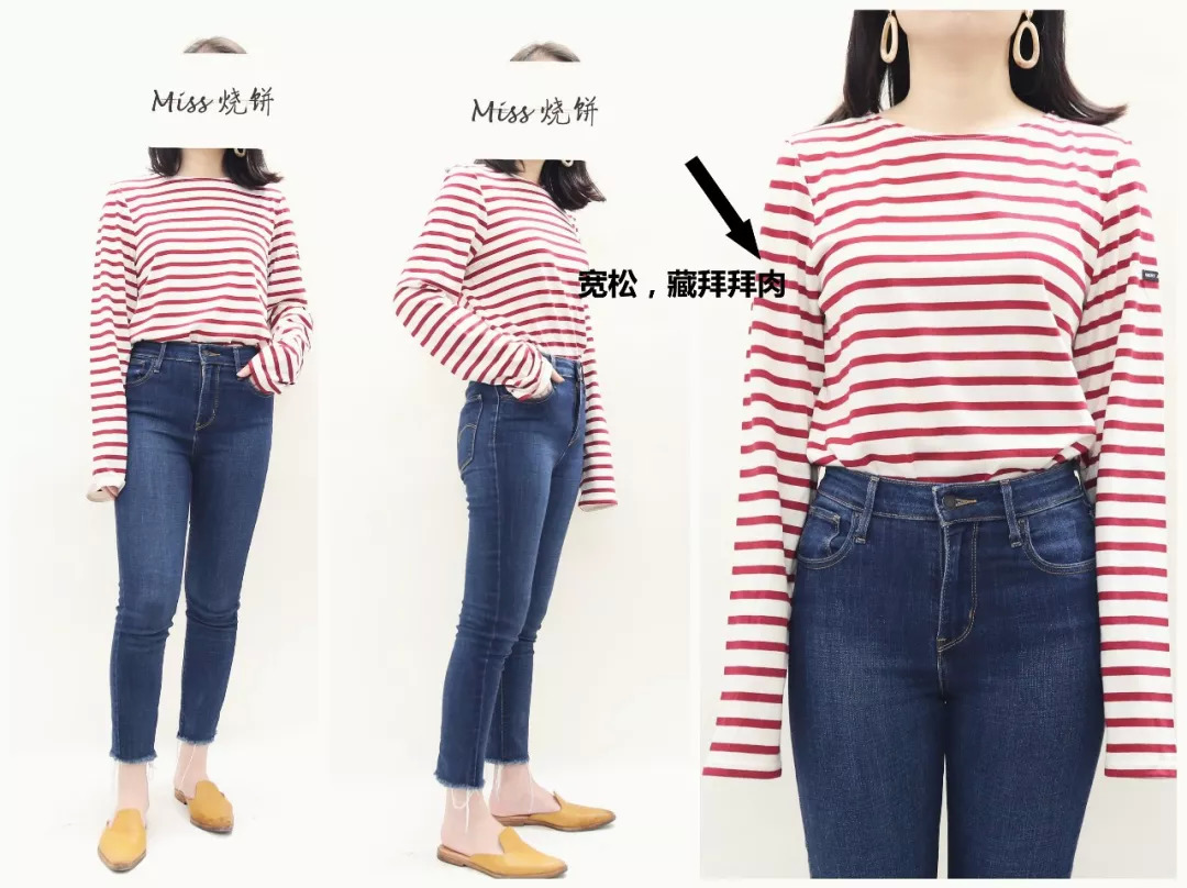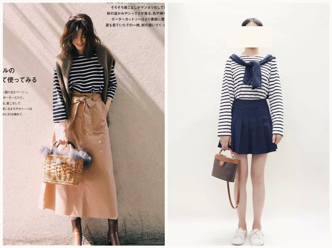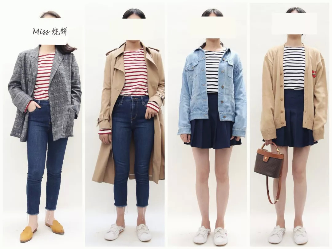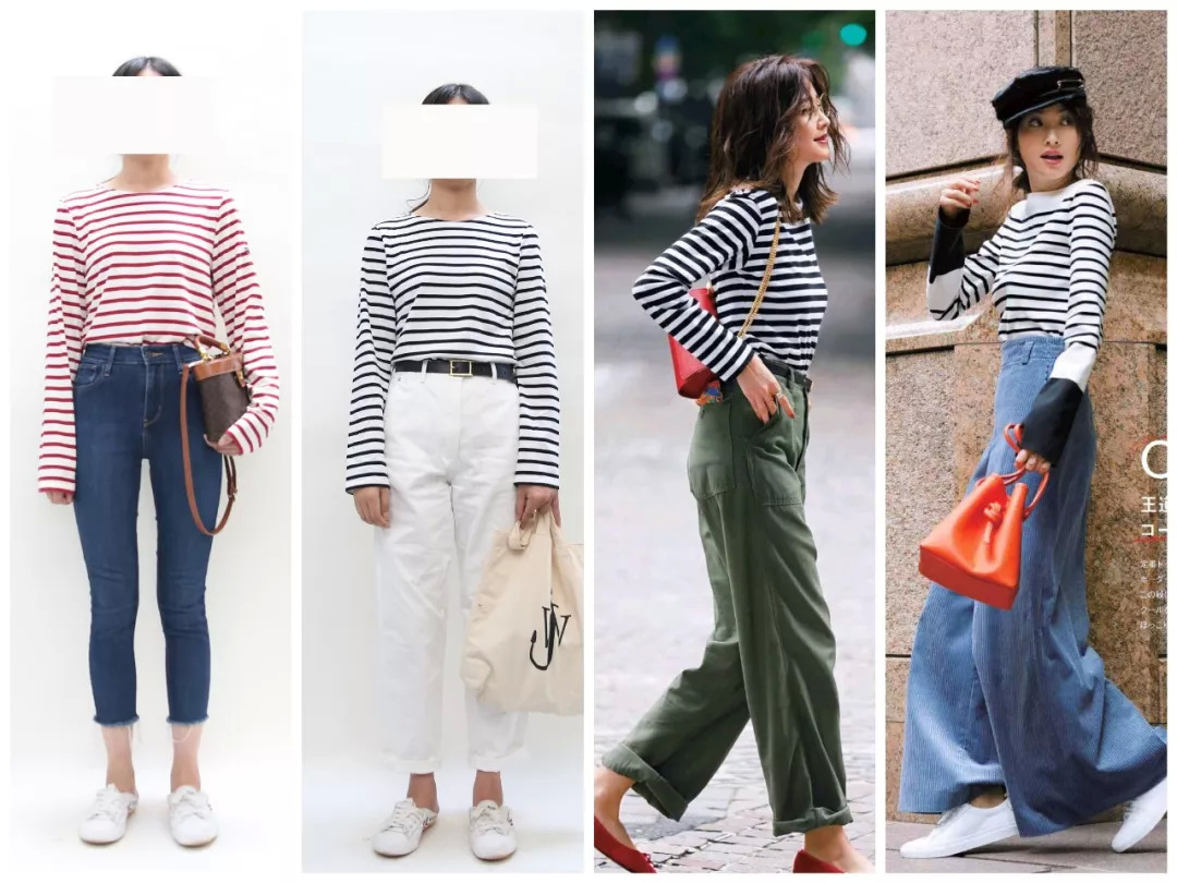 而且,根据Miss 烧饼私藏经验,条纹比纯色更适合搭外套。尤其秋冬,很多人外套都偏爱基本款,内里如果也选纯色就会单调,但换成条纹就会更时髦。