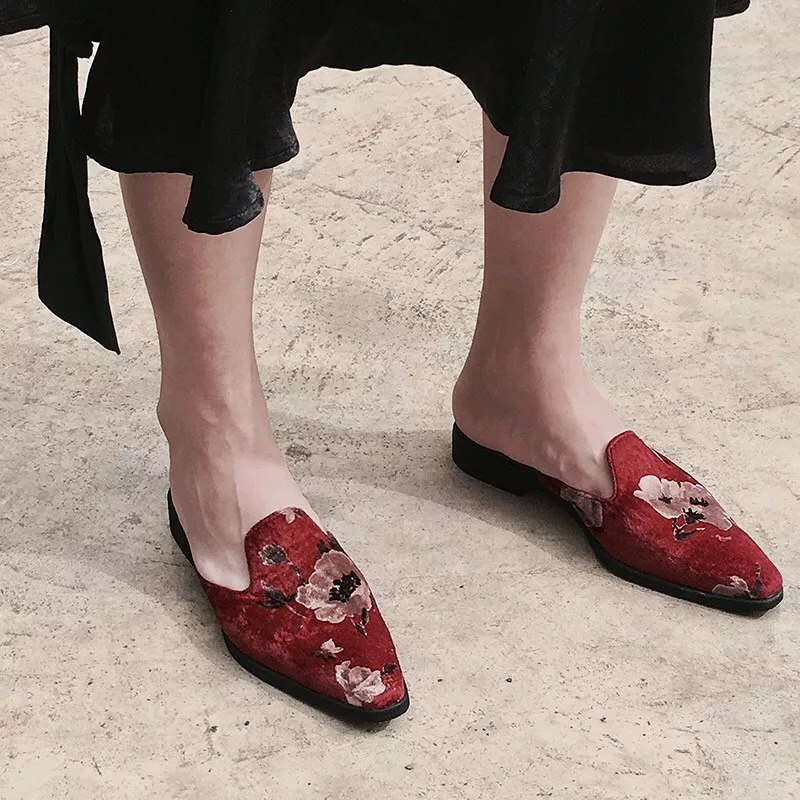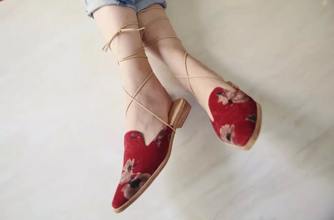 这双鞋非常修脚型!刚好露出最骨感的部位,连我这种小肉脚穿起来都很显瘦。丝绒款除了红色,还有复古绿可选。淘宝报暗号“大饼”,还有9折&包邮优惠哦!