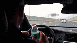 因此,“撒手哥”科尔林在撒手方向盘之后,虽然潇洒地偶尔倒个咖啡喝个水,但是一旦有车从旁边路过,他还是相当警惕地观察着。