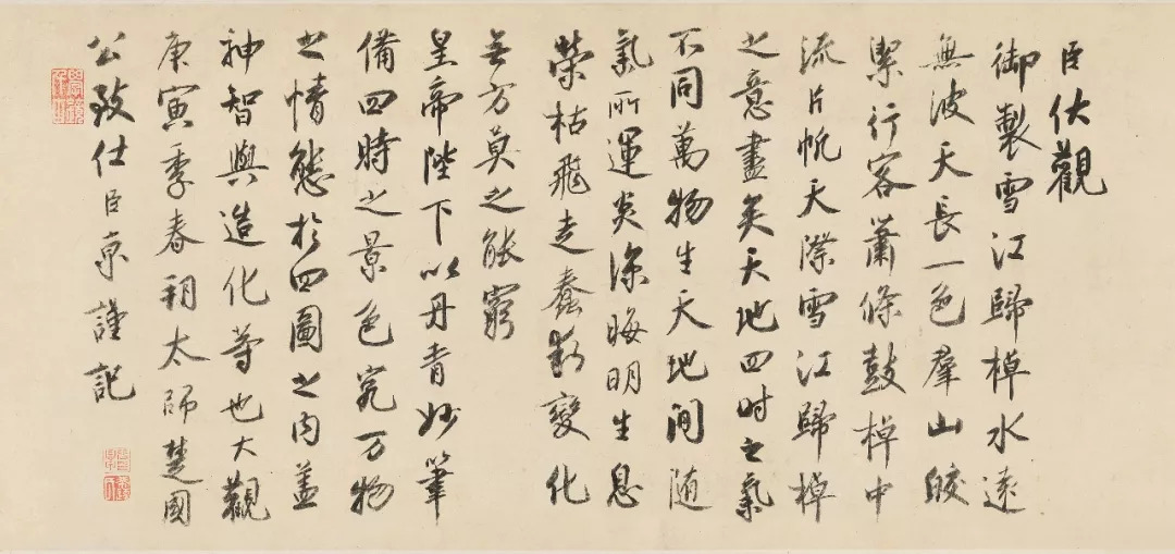 宋 蔡京行书 跋宋徽宗《雪江归棹图卷》