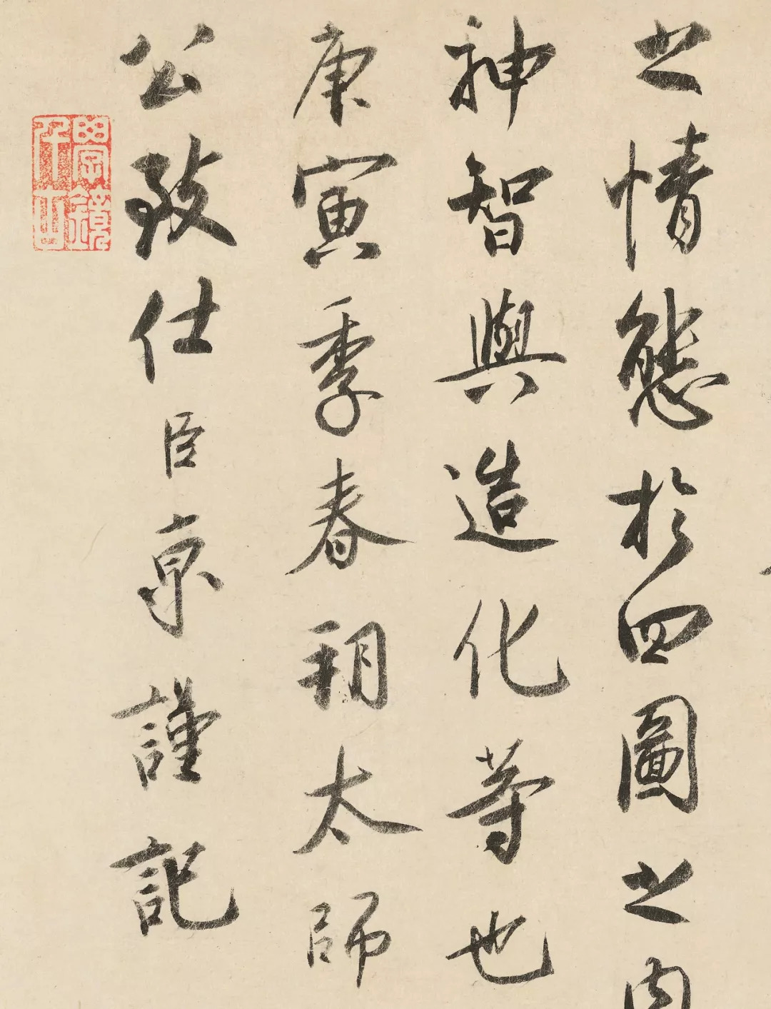 宋 蔡京行书 跋宋徽宗《雪江归棹图卷》 局部1