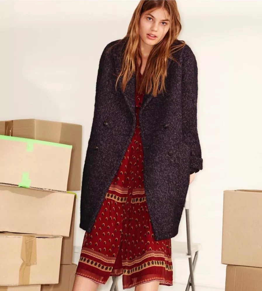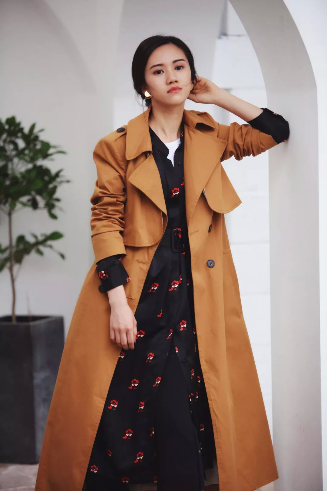 天气比较冷的时候,搭风衣、西装,都不会让印花连衣裙的落入俗套。