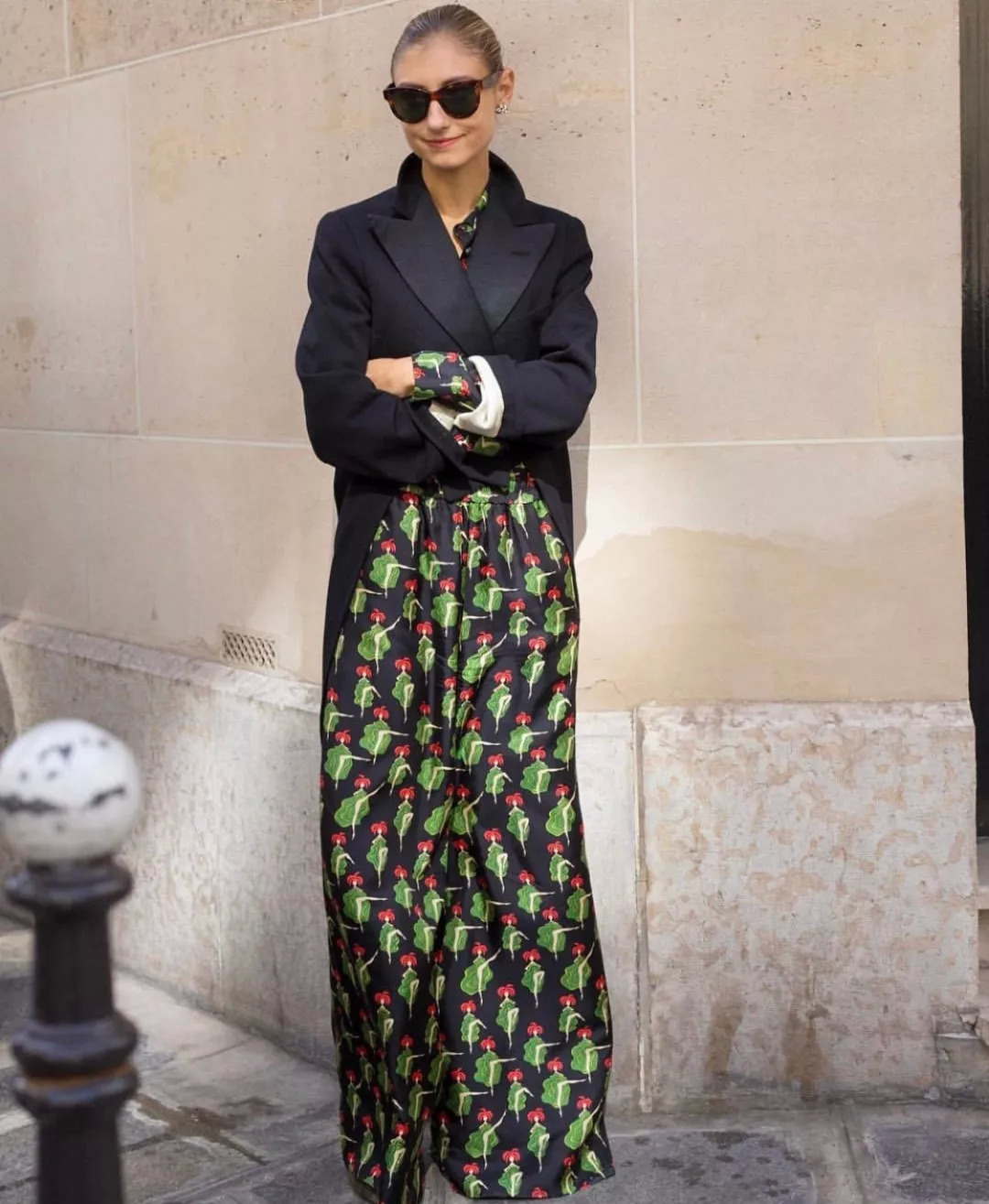 印花本身已经足够精彩,搭配的靴子和外套只需要低调的基本款。