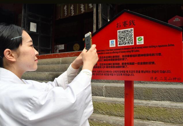 据《朝日新闻》网站报道,日本栃木县日光市日光二荒山神社近日推出了扫码支付香火钱服务。近年,前往日光市旅游的外国游客不断增加。据日光二荒山神社介绍,由于中国大陆及香港地区移动支付十分普及,所以常有游客询问“能不能用手机支付香火钱?”。该神社基于外国游客需求,于近日推出了此服务。