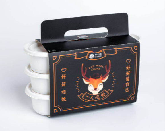 杭帮菜连锁餐厅新白鹿,在今年9月初推出了名为“一人吃好”的午餐外卖食盒。三层的食盒分层装有一荤四素、一饭,考量营养搭配外,在菜量和包装上也都作了改良升级。公司甚至为“一人吃好”的包装盒设计申请了专利。