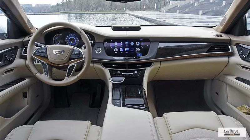 凯迪拉克CT6的内饰设计水准与它的旗舰地位相符,整体看上去优雅脱俗。方向盘、中控区、换挡杆等多处都使用了呼应车标的家族盾形设计,为内饰带来了较高的辨识度。