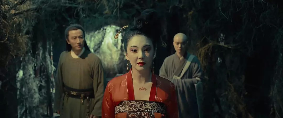 相比之下,演戏在绮姐这儿倒是一池静水,不好也不坏。细数下来,《妖猫传》里的春琴算是比较出彩的了。除了贡献被妖猫蛊惑的自然原声,张雨绮还演了一段“鬼片”。快来跟我理论这不是扮丑,明明是:张雨绮女士符合我对唐代仕女的全部想象。