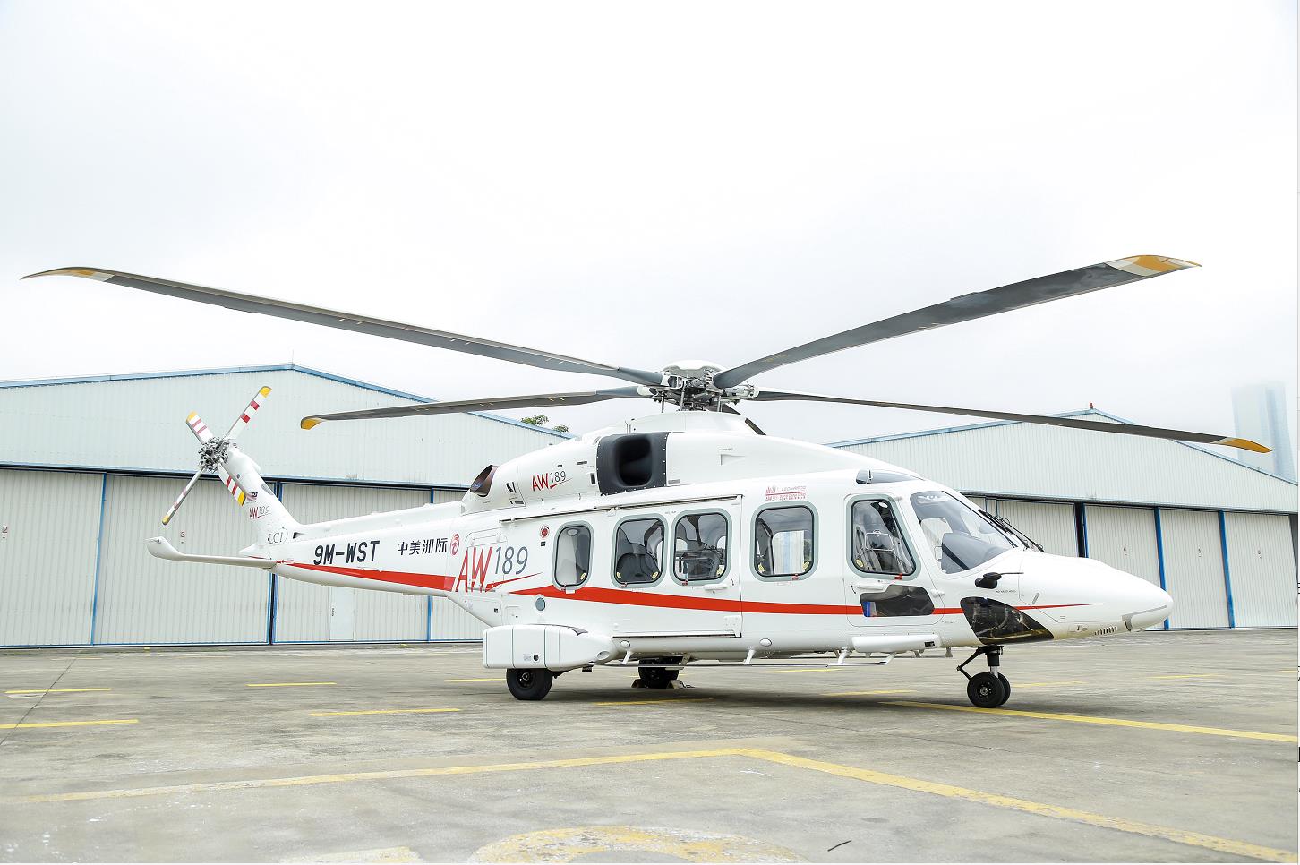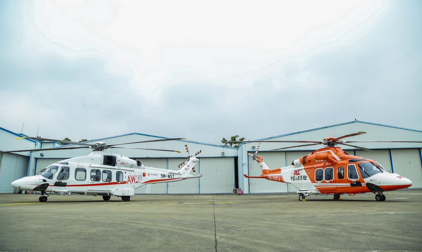 意大利莱奥纳多直升机AW189机型,是一款最新的高性能8.6吨级超中型双发直升机,总价值近2亿元人民币。它拥有行业内领先的综合航电系统和传动系统50分钟干运转能力,同时可载客人数高达19人,可灵活应用于海上通勤、搜救、执法等各种复杂环境下的作业类型。