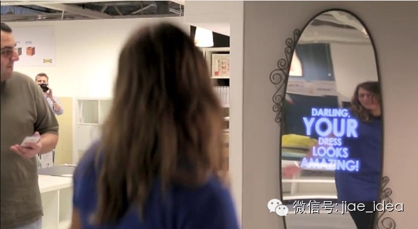 此前宜家在英国展示了一款互动魔镜,当有人经过时,“魔镜”就会感应到,并送上一些赞美。