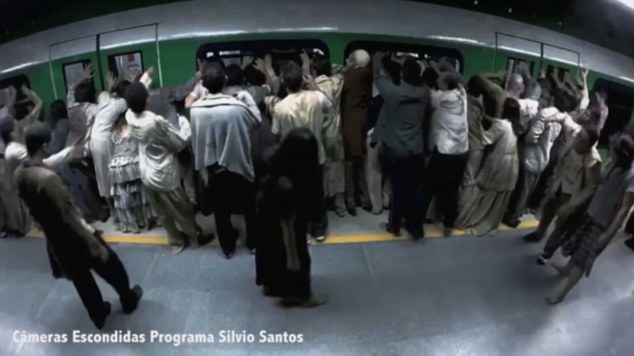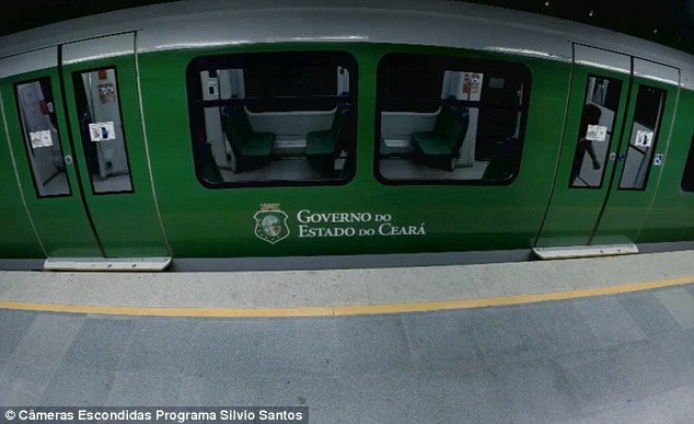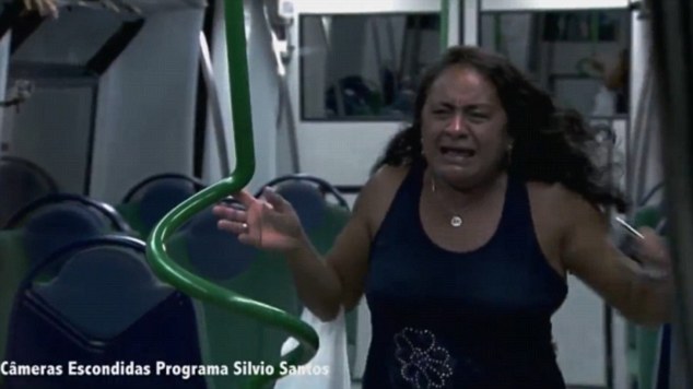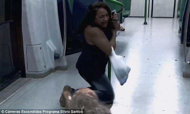 这名女子是被电视台的真人秀整蛊了。这位不知情的受害者还不知道巴西的电视台在地铁车厢里安装了隐藏摄像机。