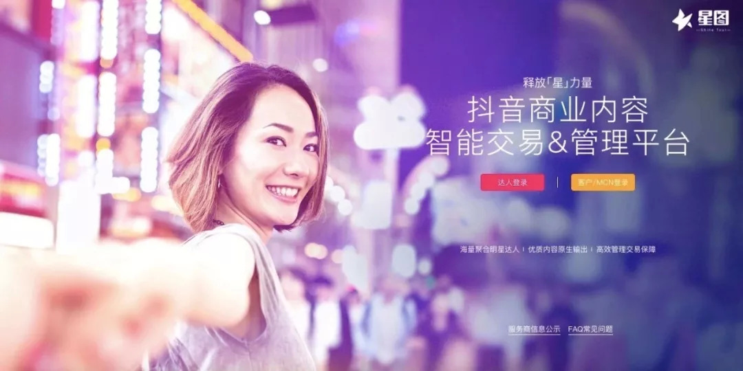 今年7月,抖音宣布上线官方推广任务接单平台星图平台,之后星图先后两次推迟上线,并最终于今年9月3日正式上线。目前已经认证并在星图提供服务的有4家星图服务商、42家MCN公司和1200名达人。星图平台可以供达人、MCN和广告主三方登录,简单来说广告主可以在星图发布任务,达人可以通过星图接单。
