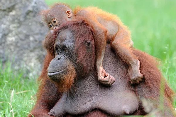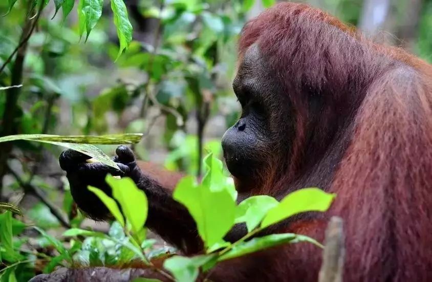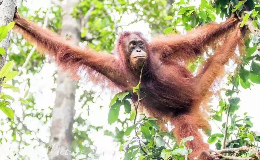 婆罗洲猩猩在灵长类动物中,体型仅次于大猩猩,站立时双臂下垂可达脚踝部。世界现存唯一的红毛猩猩栖息地就在印尼的苏门答腊岛婆罗洲热带雨林里。