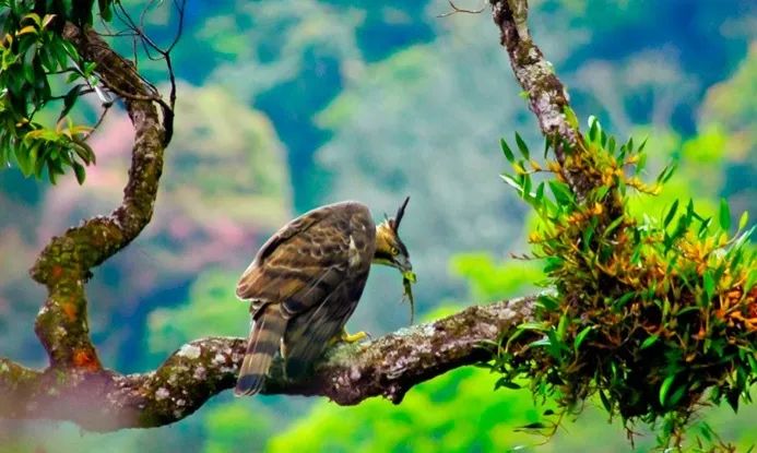 “千岛之国”印度尼西亚境内生活着超过1600种鸟,几乎比世界上其它任何国家都多。而爪哇鹰是鹰科亚洲鹰雕属的一种中等大小的猛禽,属于印尼的特有物种,分布在爪哇的热带森林。喙和爪均强健,腿部羽毛一直覆盖接近至脚爪。栖息于高山草原和针叶林地区,性凶猛而力强,鸟巢会筑在树顶。雌鸟每次会生一枚鸟卵。主要吃鸟类、蜥蜴、狐蝠科及哺乳动物。它们原先被分类在鹰雕属中,但由于属内物种的羽毛差异,一直要到1953年才被确认是亚洲鹰雕属的物种。仅存的爪哇鹰大约有250只。