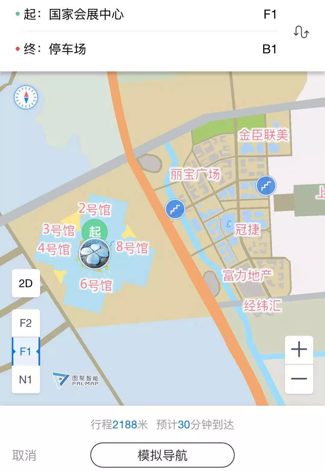 不同于传统的引导图,虹桥商务区地下空间(含二层连廊)步行引导系统电子室内地图可以在手机上查看,支持关键字搜索、随心放大缩小查看、最优路径规划,甚至还模拟导航等功能,可以为11月进博会客流提供出行导流指引。