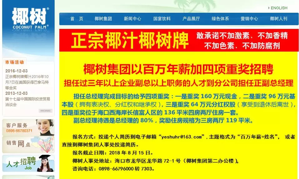 至今,海南椰树椰汁的母公司海南椰树集团的官网也依然保留着这种设计风格。