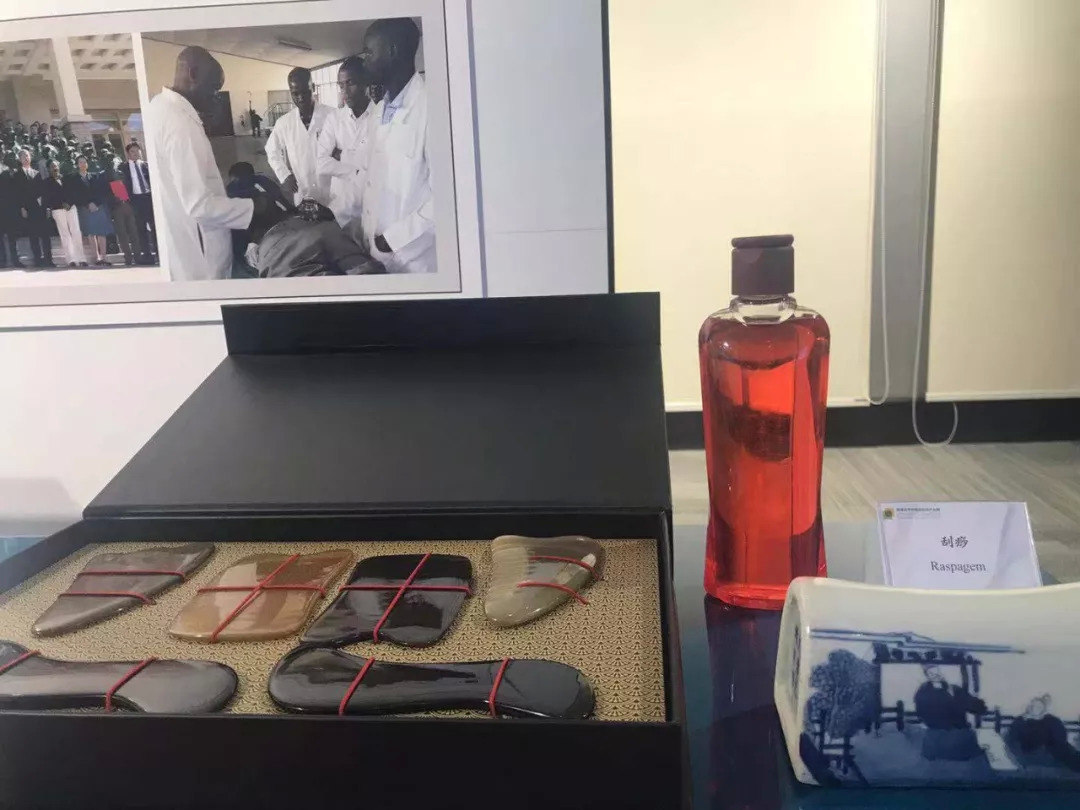 △展厅一角展示的中医刮痧(央视记者张莉莉拍摄)