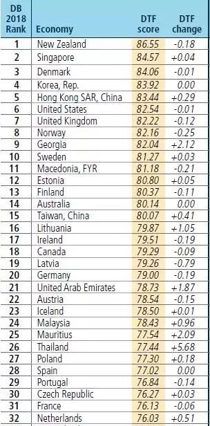 根据世界银行发布的《2018年营商环境报告》中,排名靠前的国际先进经济体,开办企业的时间一般在5天以内,共性经验主要是简化经营场所要求、电子化办理、部门间信息互联互通等。以排名第一的新西兰为例,在新西兰开办企业仅需1项手续半天时间。中国则在全球190个经济体中排名78位。