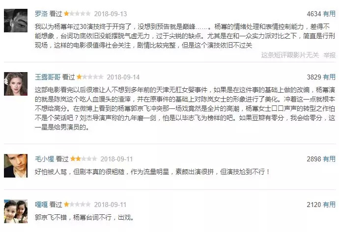 令人惋惜的是,观众对杨幂在《宝贝儿》中的转型并不买账,差评甚至大多数来自对“流量”的反感,以至于“演技尬到不行”的评价满屏飞舞。对“流量”的质疑最终汇聚成洪流,成为压垮《宝贝儿》的“罪魁祸首”。