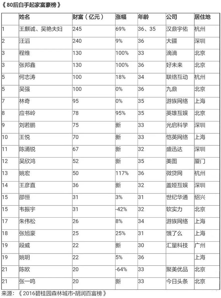 创办英雄互娱的第二年,应书岭登上胡润“80后白手起家富豪榜”,位列第八位。